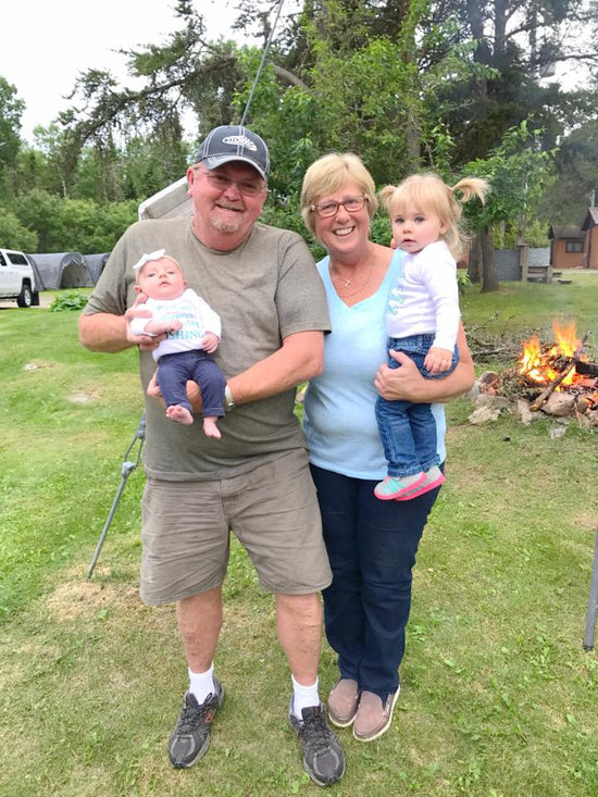 The girls enjoyed their first fishing trip with Bill & Nellie at the Lake Despair Lodge! Nellie spoiled Miss Tatum with an ice cream cone just about every night & Bill has held bigger walleye than Miss Oakley! Always a great time visiting! The girls shirts say "Pack my diapers, I'm going fishing"